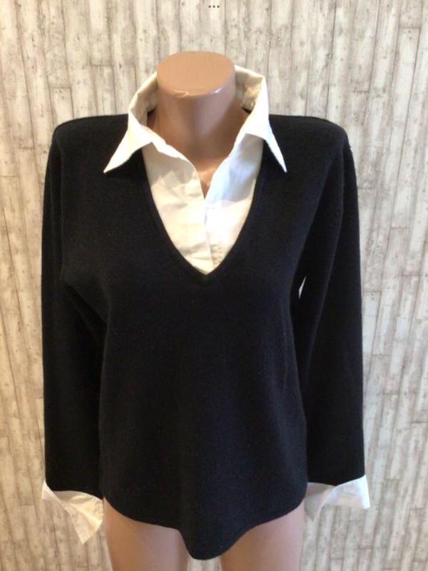 Пуловер с білою блузою / обманка- тільки ворот і манжети/. Дліна 59, пог 53, рукав 59 разом з манжетом