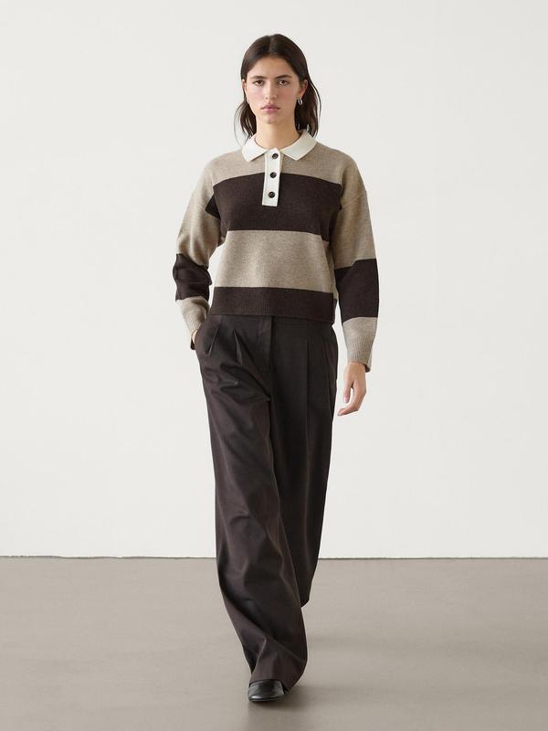 Цена 4300 📌95% шерсть, 5% кашемир📌 Свитер из трикотажной смеси шерсти. Контрастный воротник поло. Длинные рукава. Виїмчаста окантовка. Свободный крой. 5720/620