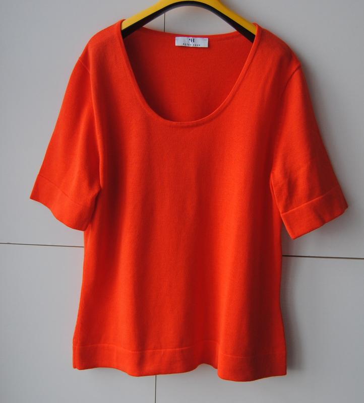 Пуловер PETER HAHN Розмір і склад на фото. ПОГ (груди) - 46 см. , тягнеться орієнтовно до 54 см. ПОТ (талія) - 43 см., тягнеться орієнтовно до 50 см. Рукав - 25 см. Довжина - 56 см. Стан ідеальний,без дефектів. Колір лососевий.
