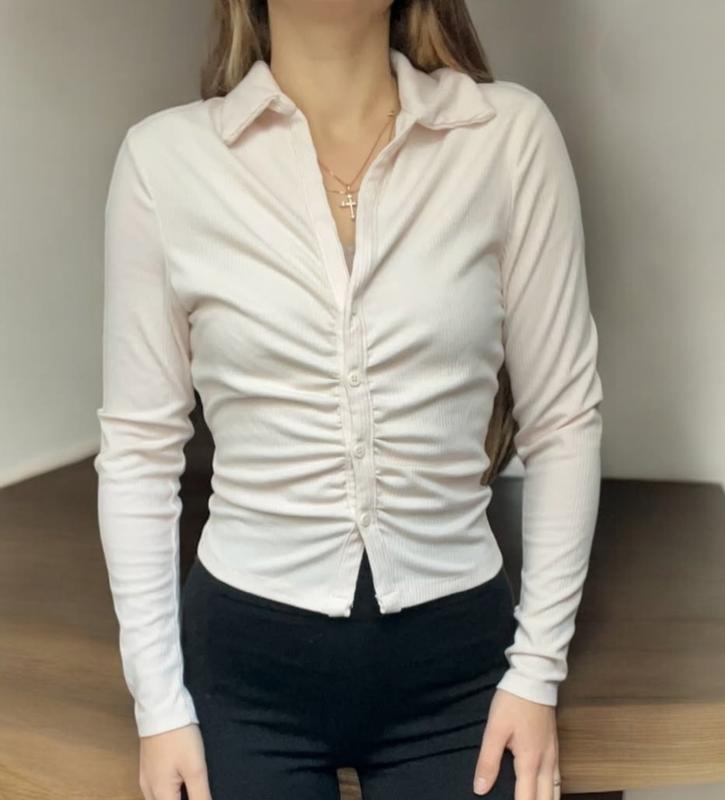 размер S молочного цвета пог 48-60 рукав 64 длина 49 полиэстер, эластан, вискоза 34%