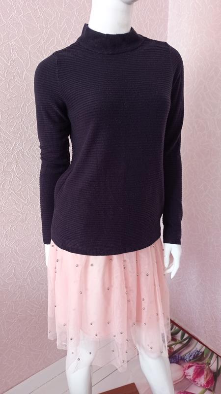 Пуловер темно синього кольору з мінімальними слідами використання (присутні ледь помітні ковтунці, легко прибираються за допомогою машинки), в ціні враховано. Розмір ХS, але можна і на М плечі 34 см, рукава 64 см, груди/талія/низ 44 см, довжина 62 см