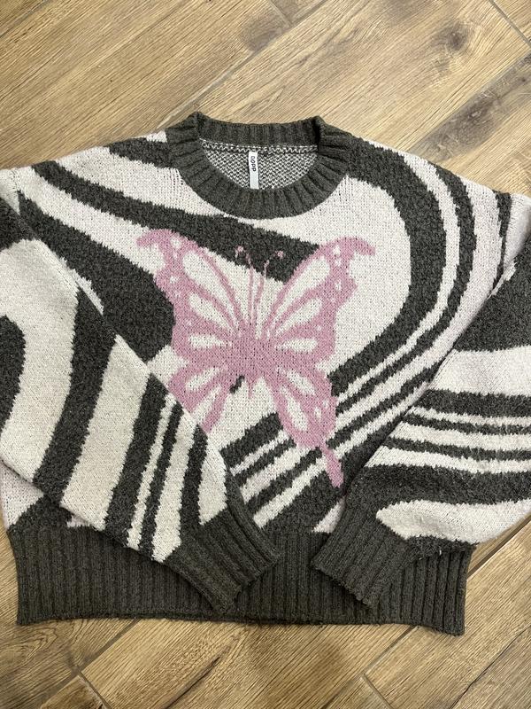 Женская кофта с изящным принтом бабочки. Стильная, удобная и теплая. Отлично дополнит ваш гардероб! размер от S до L одевалась несколько раз, с обратной стороны есть катышка