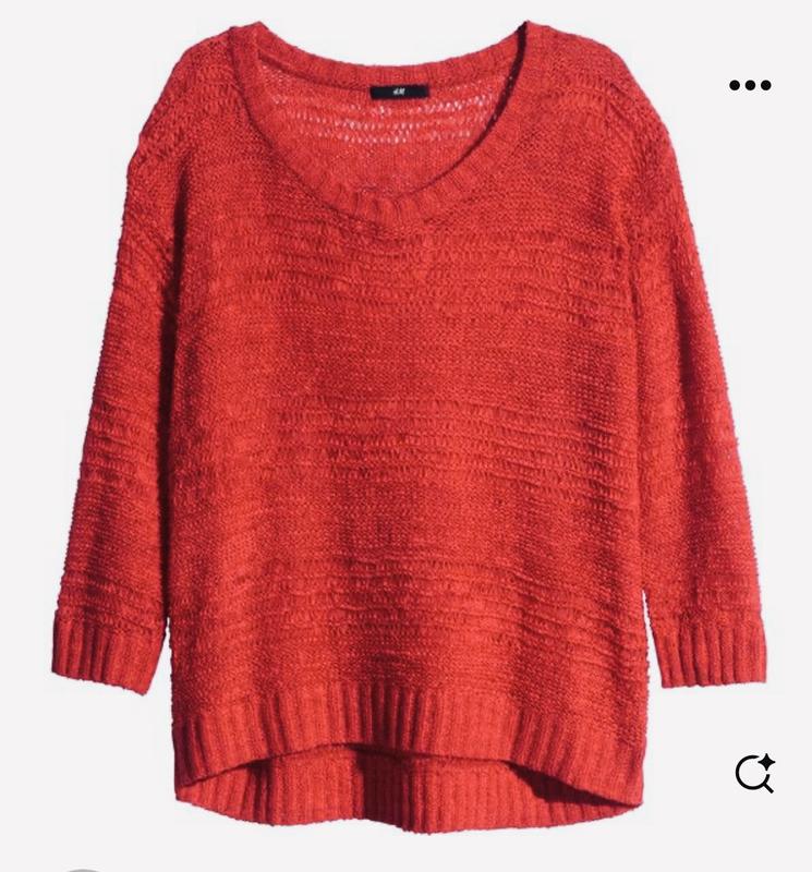 Вязаный джемпер топ H&M с рукавом 3/4. Оверсайз, по бирке размер S, подойдет и на М-L. ПОГ - 56см, Длина от плеча до низа - 62см. Коралловый цвет.
