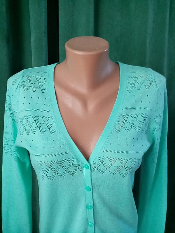 Торг возможен. Размер 44-46,ног 45, нот 42, нос 39 ( резинка тянется до 49 ), плечи 36, рукав 63, длина 56. Цвет как на фото 1, бирюзовый с выбитым узором. Ткань тонкая, машинная вязка. При покупке 2 вещей цена 40 грн