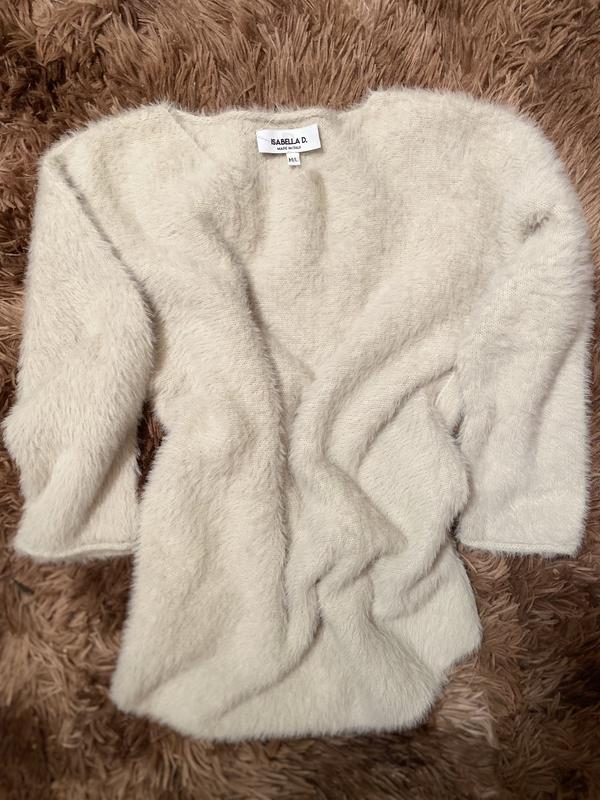 Колір молочний, дуже мʼяка, зручна і стильна. Рукав 3/4. Довжина 64, пог 47, рукав від горловини 54см.