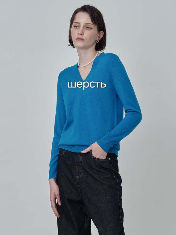 Шерстяной пуловер василькового цвета. Размер указан М. Состояние новой вещи.