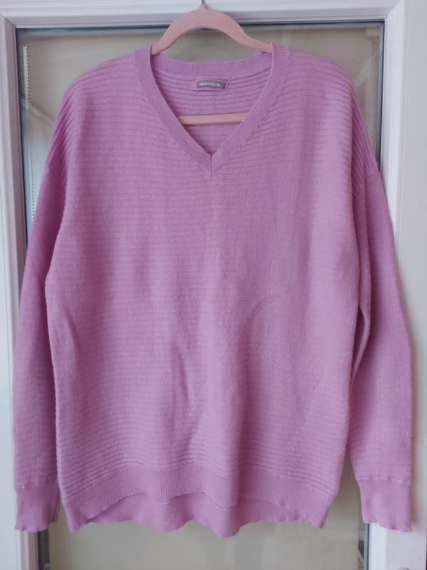 Теплый кашемировый пуловер от премиального бренда Hemisphere, в нежно- сиреневом цвете. Нюанс- зашиты микродырочки ( на последнем фото), на лицевой стороне не видно совершенно, в цене учтено. Длина 67/72, пог. 54, плече с рукавом 77.