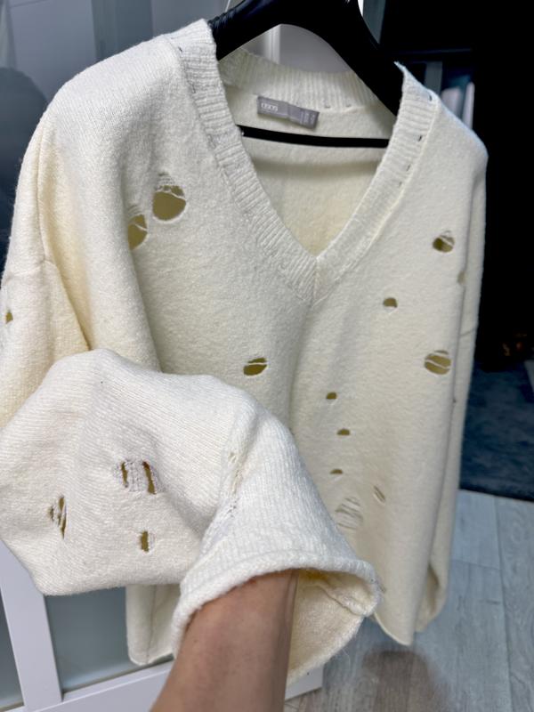 Полувер у стилі оверсайз набирає все більшої популярності у світі моди, і оверсайз кофта з декоративними дірками - яскравий представник цього тренду. Вільний крій і подовжений силует дірявого светра створюють неповторний образ.. самий трендовий колір- колір масло. Підійде від розміру S,як на моделі до L. Довжина - 65 см, ПО ширини - 65 см, В ідеальному стані🎉