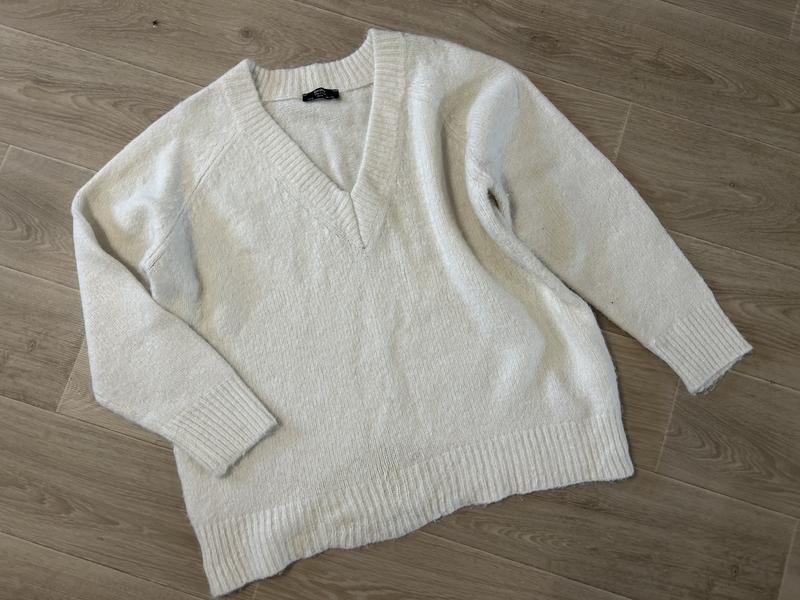 Стан гарний Вʼязка дуже мʼякенька, приємна до тіла та тягнеться Колір молочний По бирці р.S, можна орієнтуватися на заміри (йде як оверсайз) Пог 66/76 см, довжина 70 см, рукав від горловини 69 см