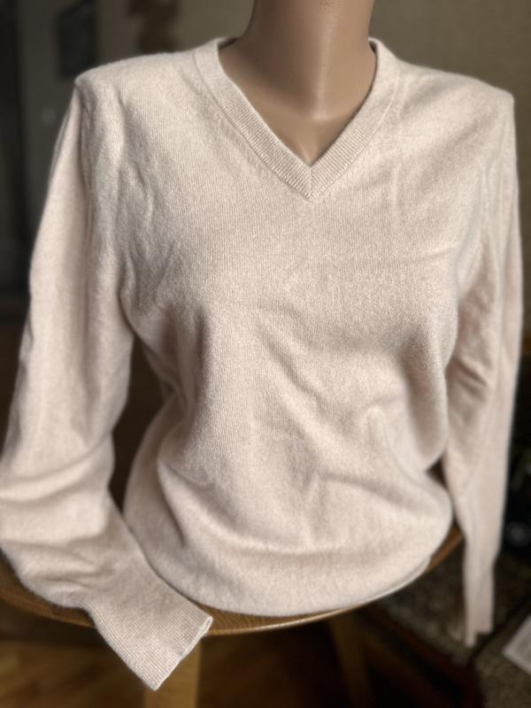 Светр виконаний із дорогого високоякісної кашеміру. М'який та теплий светр дарує відчуття затишку та комфорту. 💫Стан є невеличкий без дефектів на рукаві див фото 💫Розмір M 💫Заміри: довжина по спинці 71 см., плечі 38-39рукав 64 см., ПОГ 49см 💫Склад: 100% Кашемір — м'яка, дуже тепла тканина саржевого переплетення з вовни мериносів або козячого пуху. Унікальний, дорогий матеріал, який стане гідною інвестицією у власний імідж.