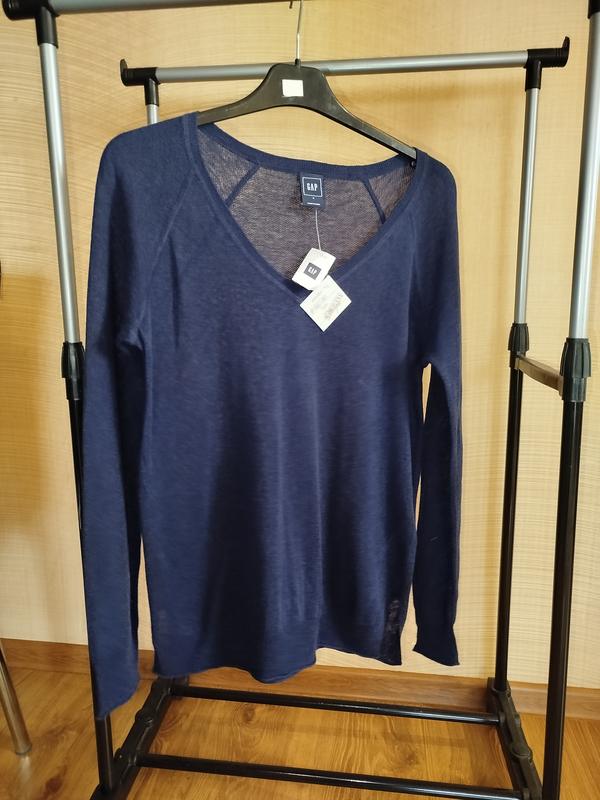 Сверхлегкий классический пуловер GAP Стильный и универсальный пуловер глубокого темно-синего цвета. Идеальный вариант на весну и прохладные летние вечера. Легкий, дышащий и очень приятный к телу. Модель имеет V-образный вырез, комбинированную вязку: рукава выполнены более крупной фактурной вязкой, что придает изделию стильный акцент. Низ и рукава на мягкой резинке. По бокам аккуратные разрезы 10 см, которые красиво садятся по фигуре и добавляют комфорта. Состав: 55% linen (лен) 45% rayon Размер S Длина рукава от воротничка - 73 см Полуобхват под рукавами - 48 см Низ (резинка) — 43 см Длина - 62 см Размер M Длина рукава от воротничка - 74 см Полуобхват под рукавами - 50 см Низ (резинка) — 45 см Длина - 61 см