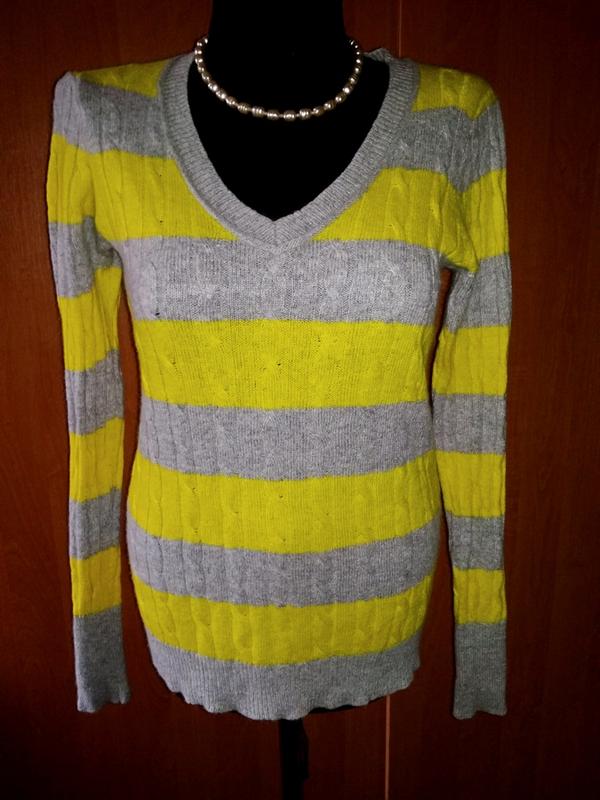 Пуловер 46 Ann Taylor,в серо-жёлтую полоску,в очень хорошем состоянии,23% шерсть и 5% шерсть кролика,мягенький,ПОГ 46-56,ПОТ 41-54,рукав 64,длина 60.Манекен 46р.
