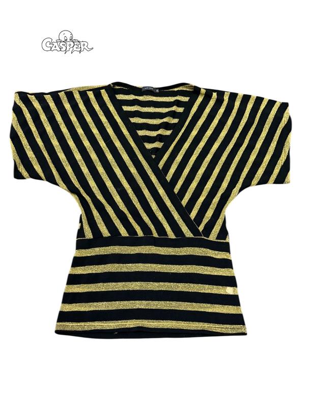 Кофта в чорно-золоту смужку, з красивим декольте. Розмір с-м.