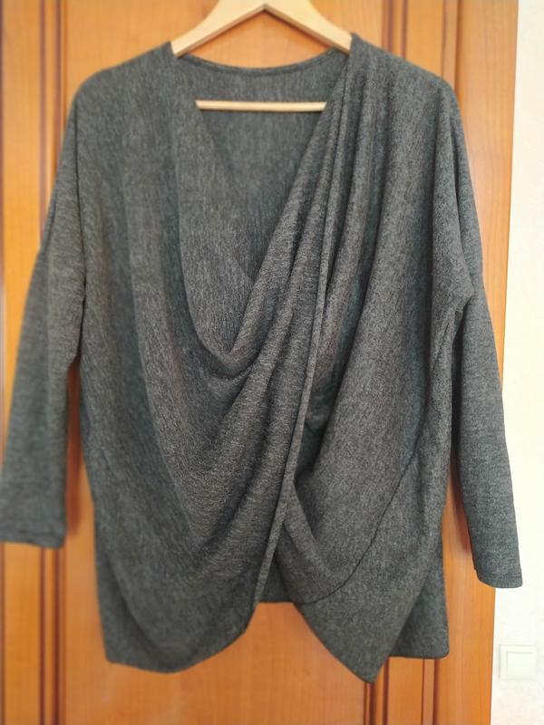 Пр-во Италия. Тонкий вязанный трикотаж. Цвет-темный графит. Занижена линия плеча. ПОширины-80см,плече+рукав-70см, длина-72см.
