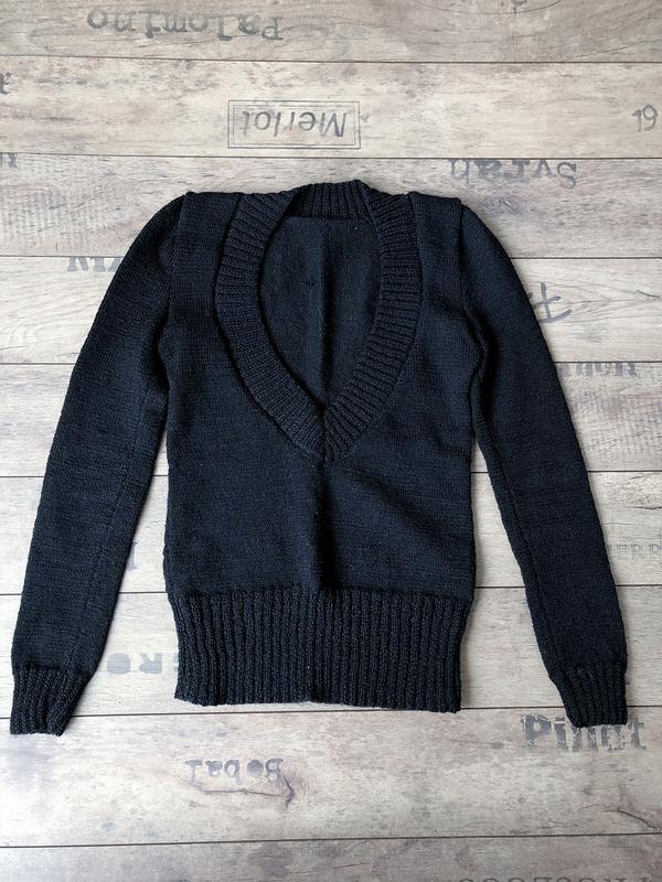 Вязаный пуловер с глубоким вырезом Предполагается носить на рубашку или блузу Цвет - чёрный