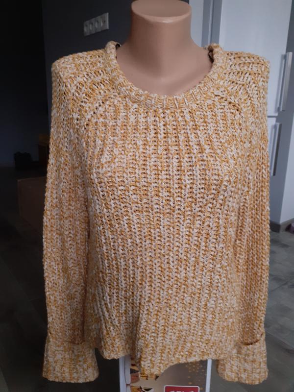 Стильная кофточка крупной вязки размер S.Замеры: длинна 47, ширина под мышками 49, длинна рукава от горловины 72