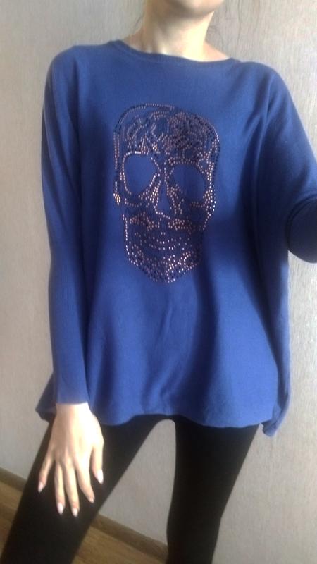 Кофточка с пошивом летучая мышь с сверкающим черепом б/у , состояние очень хорошее (нет только одного камушка), размер не указан, но где-то от XS до М, идет свободного кроя (оверсайз), замеры: длина рукава от горловины = 63 см, полуобхват груди = 78 см, длина изделия = 62 см