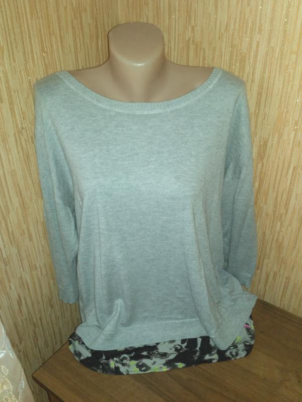 Шикарный двойной свитерок. Супермягкий трикотаж + плотный шифон (или шёлк?..). Очень красивый. Натуральный цвет на последнем фото.