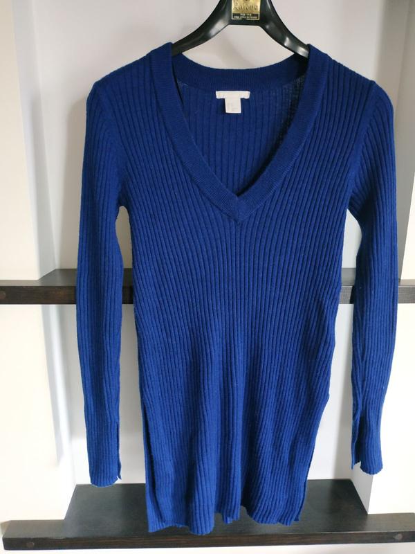 Пуловер H&M Мягкий приятный пуловер. Состояние идеальное. Размер указан 34(xs), подходит36(s). Тянется легко не теряя форму. Состав на фото(в составе альпака). Цвет насыщенный синий. По бокам разрезы, на рукавах разрезы. Красивый цвет.Замеры под руками36см, тянется до 46см, длинна рукава62см,длинна по спинке 75см, разрезы27см.