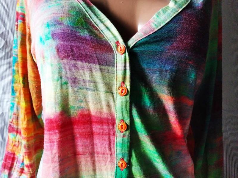 Натуральна,з живописним принтом та зав"язками по боках ПІДПИСНИКАМ-ЗНИЖКА 10% Всі виміри зроблені в спокійному (не розтягнутому) стані. Довжина(по спині) 63 Завширшки(пахви) 45 Рукав 60 Плече 10
