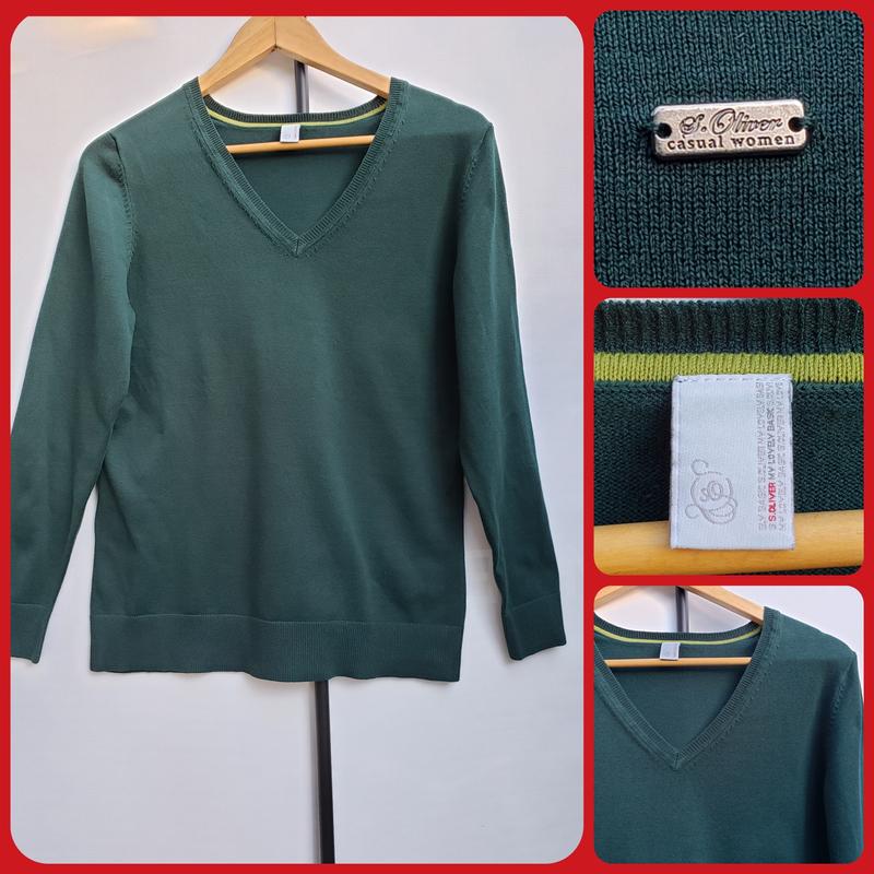 Базовый полувер темно-изумрудного цвета в отличном состоянии, следы носки минимальны, нюансов нет.