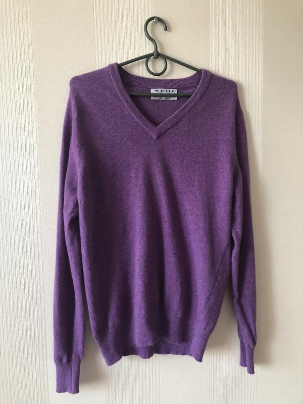 Фіолетовий м'який светр з v-вирізом з вовни ягняти. Ламбсвул пряжа відрізняється від звичайної шерсті своїми характеристиками. Вона м'яка, ніжна й добре зігріває, незважаючи на товщину матеріалу. Такі властивості досягаються за рахунок типу вовни, адже це овечий підшерсток, а не повноцінна шерсть. Не така колюча, як звичайна шерсть. Розмір на бірці 38, на С-М. Річ вінтажна, але стан відмінний.