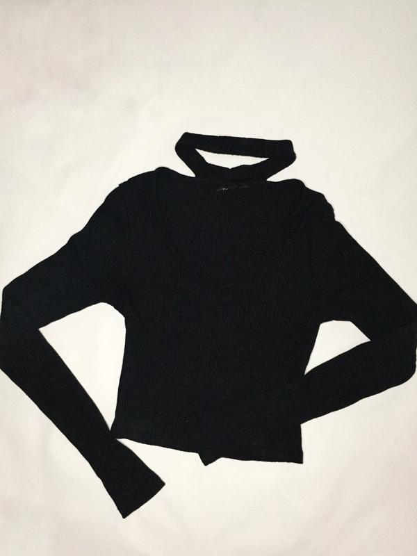 Укорочена кофта з паском на шиї