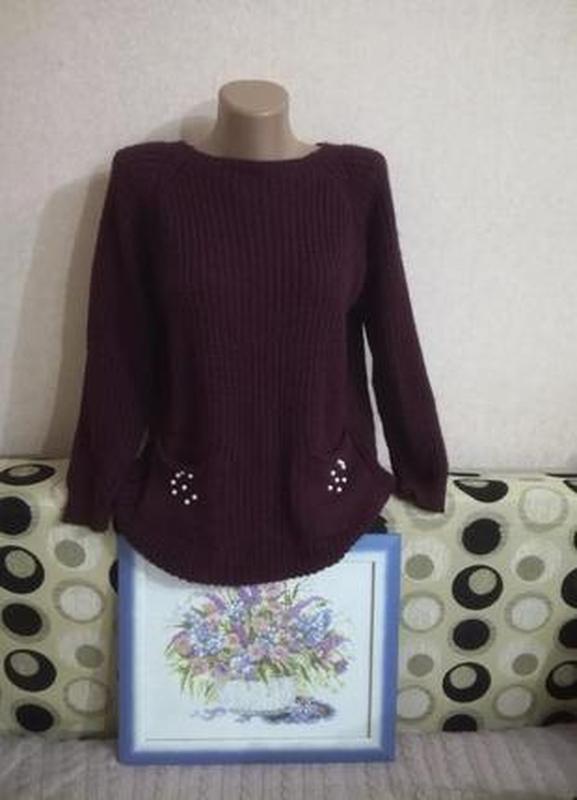 Суперовый джемпер пуловер c двумя карманами украшенными бусинами под жемчуг р.M/L/XL Italy Длина 62см ПОГ 50-52см Длина рукава от горловины 64см