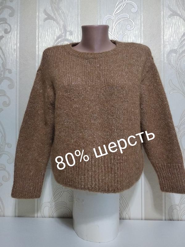 Шикарна молодіжна кофта, велика в'язка, хороший склад 80% вовна і 20 пе, не колеться. Довжина 52 см, ПОГ 55см, рукав приспущений, від шва 46 див. Тепла кофта, приємний колір, зручна. Вдалих Вам покупок.