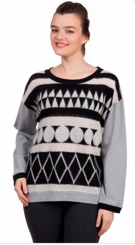 крутой брендовый пуловер,сзади и рукава х,б,трикотаж,спереди шерсть,пог 60см,длина рукава от горловины 66см,по внутреннему шву 45см,длина 65см,оверсайз,может подойти от М до XXL,смотрите замеры,сток ,без бумажных бирок,на сайте больше 3тыс.грн