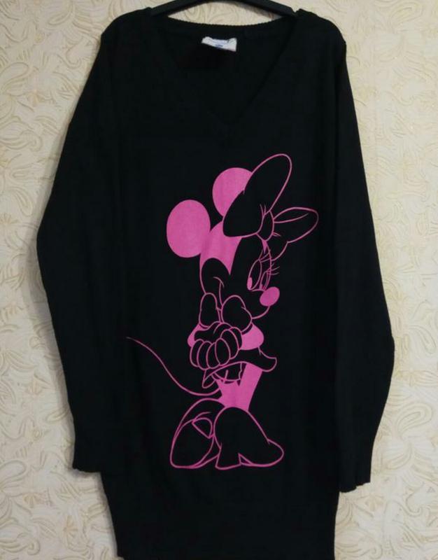 Удлиненный свитер,туника 46-48 р-ру., с ярким актуальным принтом "Микки", черного цвета,з v - образным вырезом. Замеры: плечи 37 см.; рукав 64 см.; об.грудей 48 см.; по низу виробу 45 см.; довж.виробу 78 см. Перешлю после 100% оплаты на карточку. Отправлю Новой или Укр.почтой. По дополнительной информации обратитесь. Смотрите мое другое объявления.