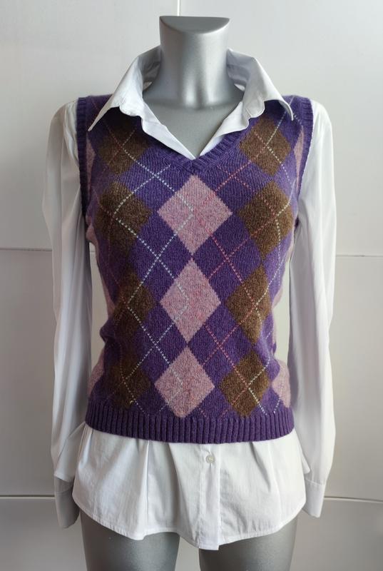Шерстяная жилетка Montego из качественного натурального материала с принтом Аргайл. Такой мягкий и стильный базовый жилет просто идеально впишется в гардероб, порадует Вас своей изысканностью и принесет море удовольствия от его носки. 💫 Состояние идеальное без дефектов. 💫 РАЗМЕР S 💫Замеры: длина 55 см., плечи 35 см., пройма 22-27 см., ПОГ 37-42 см., ПОТ 35-40 см., низ 35-40 см. 💫 Состав 100% шерсть - качественная, очень теплая, мягкая, упругая, гладкая, не колется и не раздражает кожу.