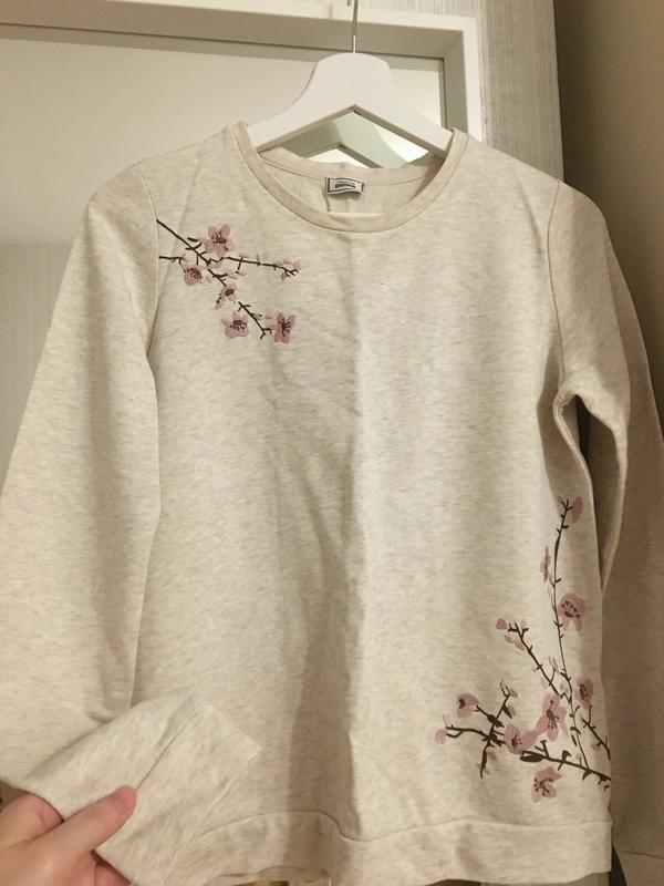 Кофта молочного цвета с вышитыми веточками сакуры. Размер S. Хлопок