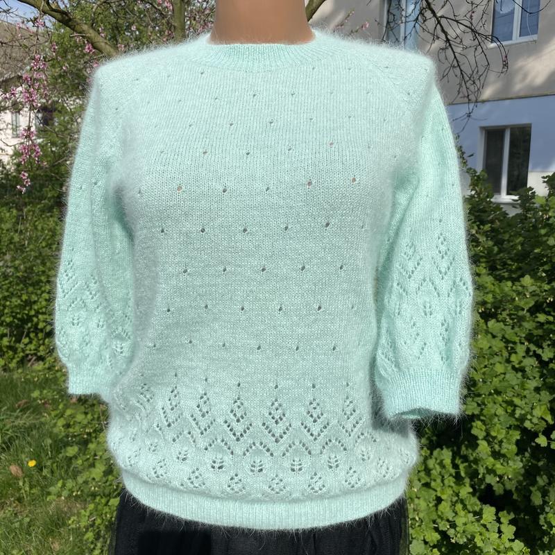 Джемпер из пряжи Ангора 70% с рукавом 3/4 Цвет - мята с добавлением нитей люрекса в тон Неженятина🥰