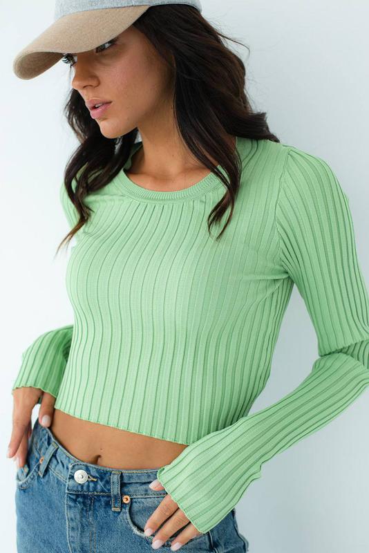 УКОРОЧЕННЫЙ ПУЛОВЕР В РУБЧИК Стильный укороченный пуловер с длинными рукавами из очень приятного на ощупь материала – трикотажа. Материал: трикотаж 🔹Размеры: one size (S, M, L) 🔹Производитель: Турция. Колір :зелений, фіолетовий.