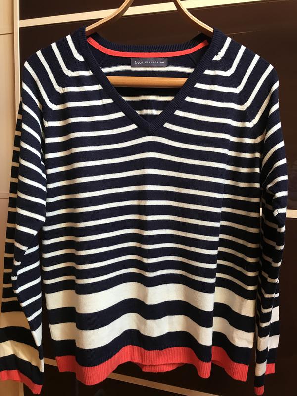 Трендова полосата кофта з V-образним вирізом від Mark Spencer Розмір M, та дуже круто на S як вільного крою Нова (без бірки)😍