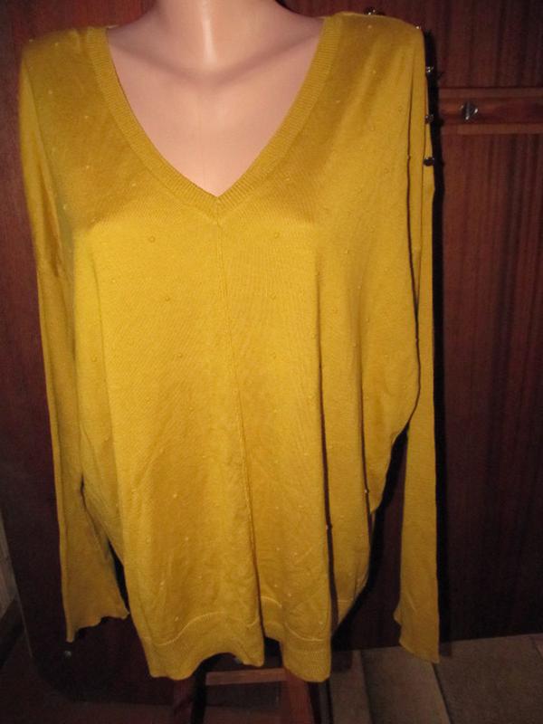 Очень нежный, приятный к телу пуловер на пышные формы Бирка с размером срезанная Р 22 ПОГ-63/75 ПОБ-57/77 Длина по центру спины-63 см Рукав приспущен, длина от горловины-73 см