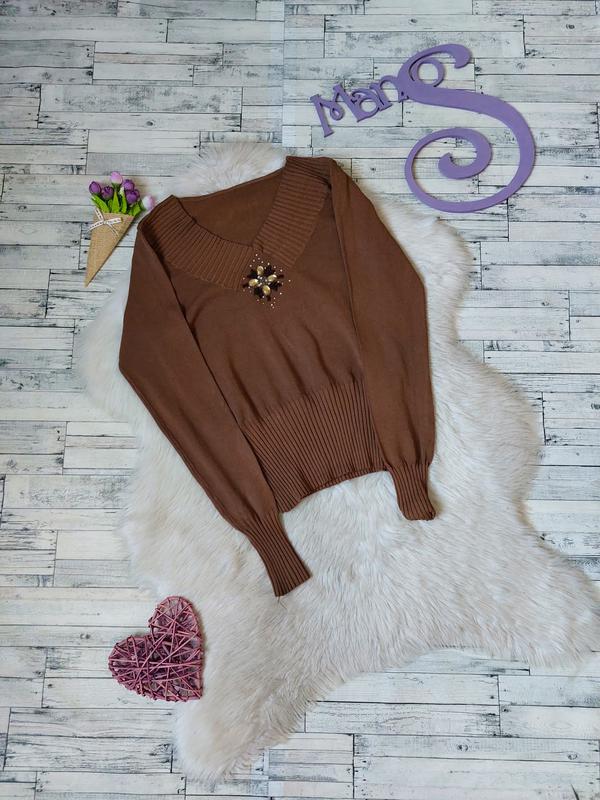 Кофта пуловер коричневый в идеальном состоянии Размер 42(S) Замеры: длина 52 см рукав 67 см от горловины ПОГ 42 см ПОТ 30 см снизу,тянется цвет коричневый состав 55% шелк,45% вискоза