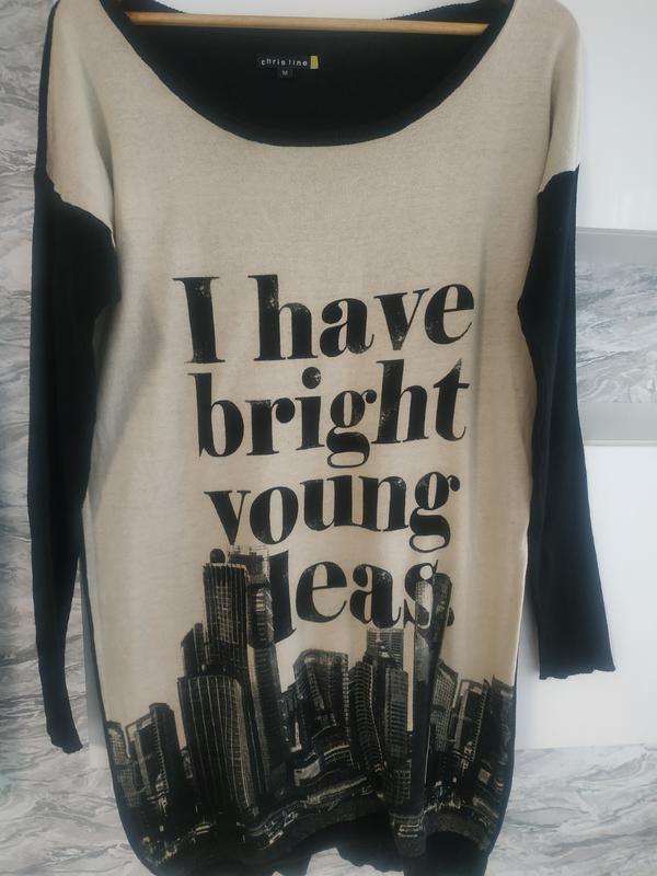 Стильный удлиненный тонкий пуловер,длина- 86-87,длина рукава от горловины-73, плечо спущенное-16 см. ПОГ-54,ПОБ-54...,по низу-47...Вырез горловины довольно свободный