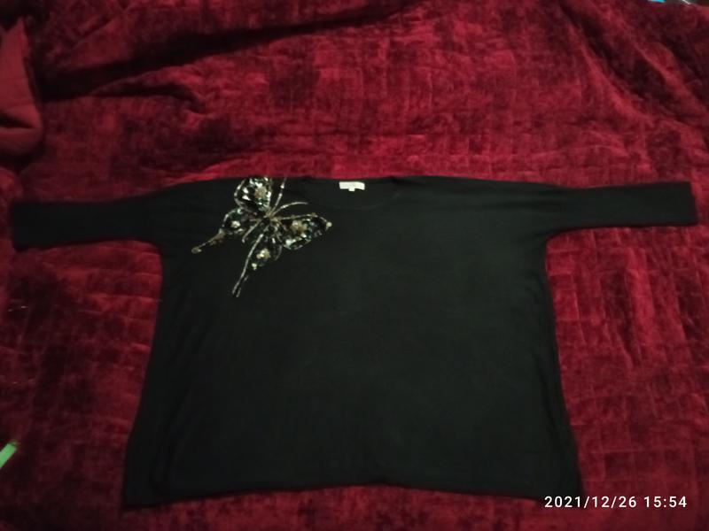 чорний, м'який тонкий трикотаж приємний на дотик,пог-68см,побіди-78см, рукав тричетверти,довжина полувера-62 див. віскоза-80,еластан-20.