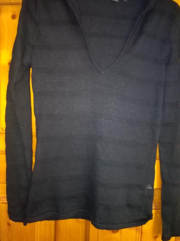 Пуловер женский с капюшоном,в слегка просвечивающие полоски,видно на фото,с отличным составом