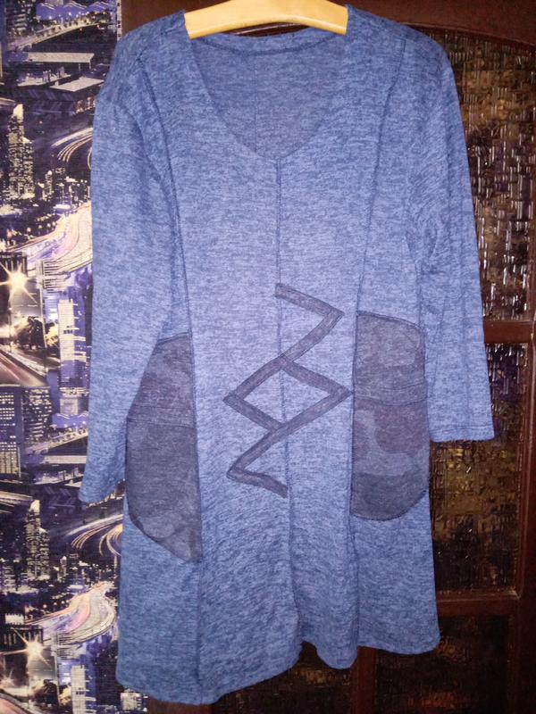 Туника с боковыми карманами и наружными швами. Ткань тянется. Длина - 90см. Грудь - 56см, низ - 93см.