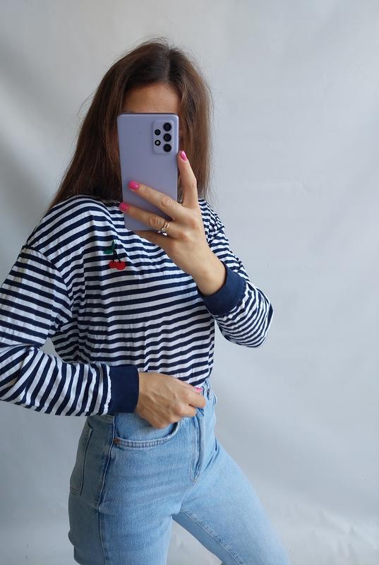 Стильный реглан в полоску с принтом ягідки розмір С,може бути ХС. одягнено на параметры 83-63-87 стан відмінний, тканина натуральна, тягнеться