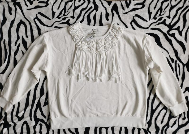 Реглан белый р. L, оверсайз, 2х нить, новый. Производство River Island. Длина 65см, полуобхват груди 66см. На рукавах манжет.