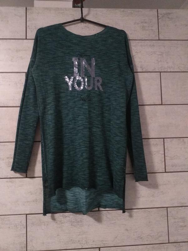 Изумрудный цвет Мягкая , интересный принт Размер указан S подойдёт и на M Замеры Длина спереди 70 см Сзади 78 см ОГ 45 см Рукав 60 см Спрашивайте отвечу на все ваши вопросы