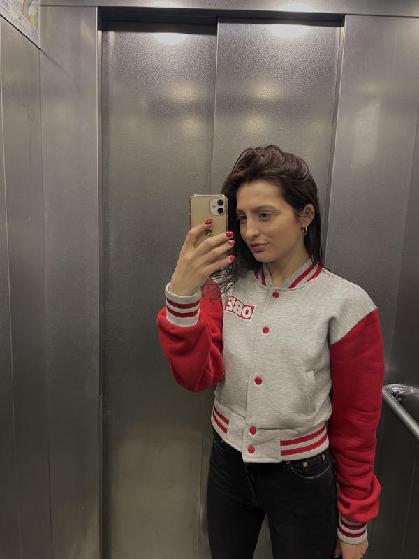 Стильний бомбер, на бірці вказано розмір L,вдягнено на s/xc