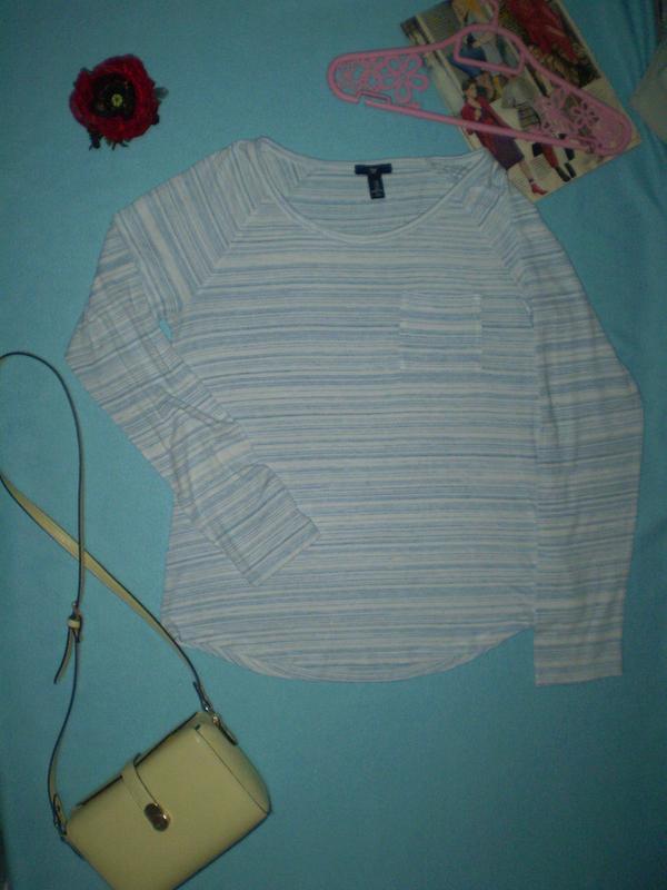 Фасон рукавов "реглан" - начинаются от горловины. Нежно-голубые полоски на белом фоне. Слева спереди - карман. Низ полукругом, можно носить навыпуск. ⬇️ 97% вискоза трикотаж 3% еластан ⬇️ Ширина между проймами 50см Длина 65см Рукав от горловины 74см Рукав от проймы 56см ⬇️ 🚛🚚Пересылаю удобной вам по почте. 17