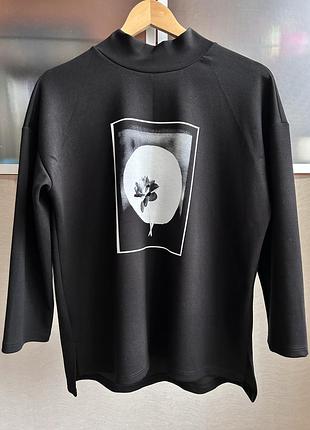 Черный реглан. Очень качественный. Украинского производства. Сзади чуточку длинше, чем спереди. По бокам небольшие разрезы.
