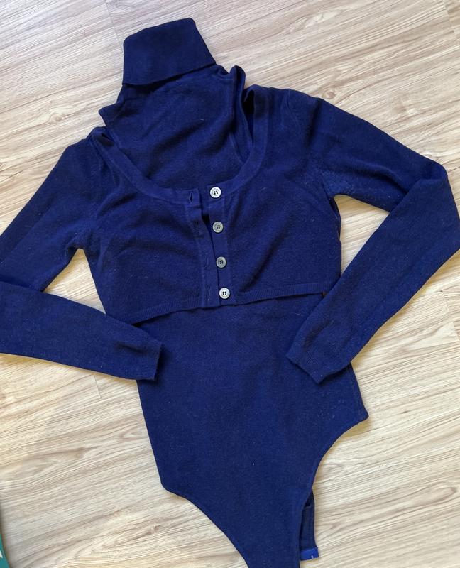 Стильний топ із кофтою Длина гольфа 53см Длина до края ,где застежка 72см ПОГ 33.5см(тянется 46,5см) Длина кофты 29см Длина рукава 57см ПОГ 35,5см Отлично тянется