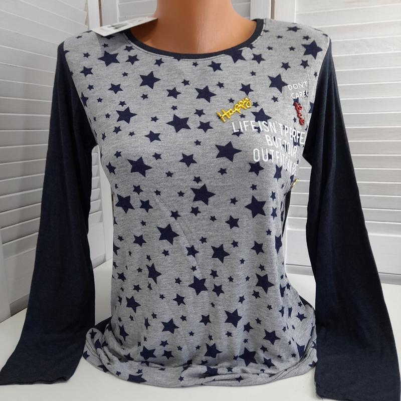 Новый женский трикотажный реглан батник Pepper & Mint. Футболка с длинным рукавом. Тоненький и приятный к телу. Тканина тягнеться. Модель классическая посадка. Спинка и рукав однотонные. Спереди рисунок звездочки. Со стороны надпись и пришитые значки. Их можно снять. Состав на бирке: 100% хлопок (вискоза по ощущению) Цвет: темно-синий с серым. Размер: S (подойдет и на М) Замеры: ПОГрудей-46см, ПОТалии-45, Плечи-37, Длина рукава- 61см, Длина изделия-65см.